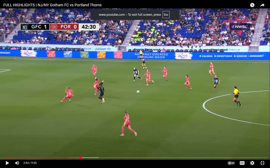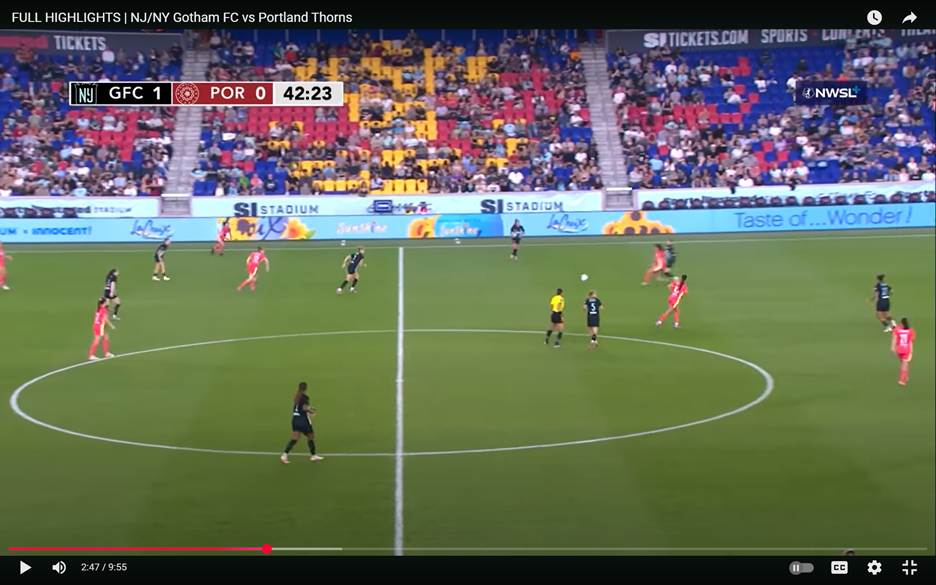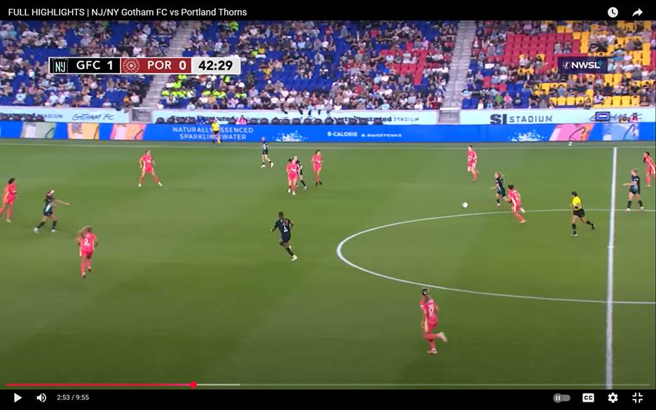 Gotham was already leading the Thorns 1-0 and well on their way to a 3-0 beat down, when a midfield takeaway and then some sublime passing doubled the lead near halftime.